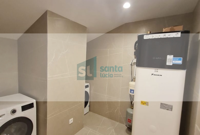 No piso superior temos uma lavandaria equipada com tanque, máquina de lavar roupa e máquina de secar roupa da marca Bosh e bomba de calor da marca Daikin, dois quartos um deles com roupeiro e closet e uma casa de banho completa, um roupeiro no hall e uma casa de banho completa. Excelente terraço com vista panorâmica para a serra.