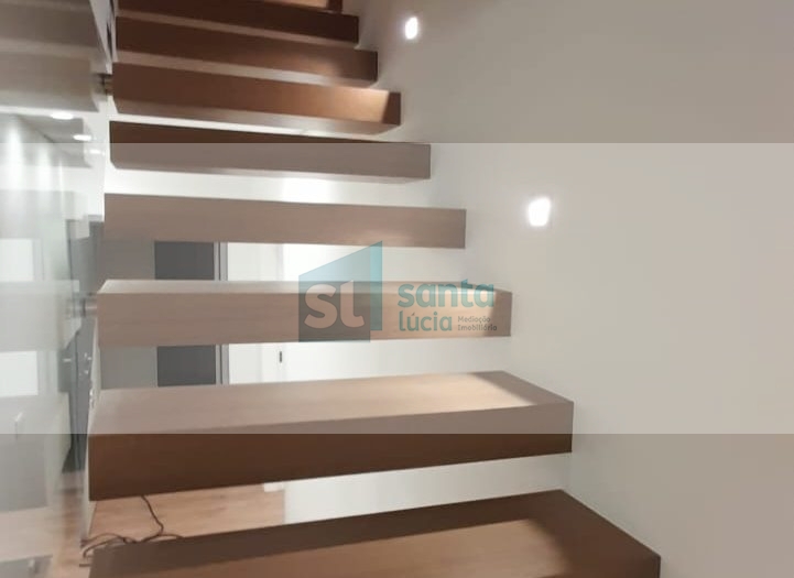 O 1.º piso é composto por cozinha e sala em open space, a cozinha está equipada com placa de indução, exaustor, frigorifico, máquina de lavar a roupa tudo da marca Bosh, dois quartos ambos com closet, um deles com suite e outro com varanda, no hall privado temos um roupeiro embutido e uma casa de banho completa.