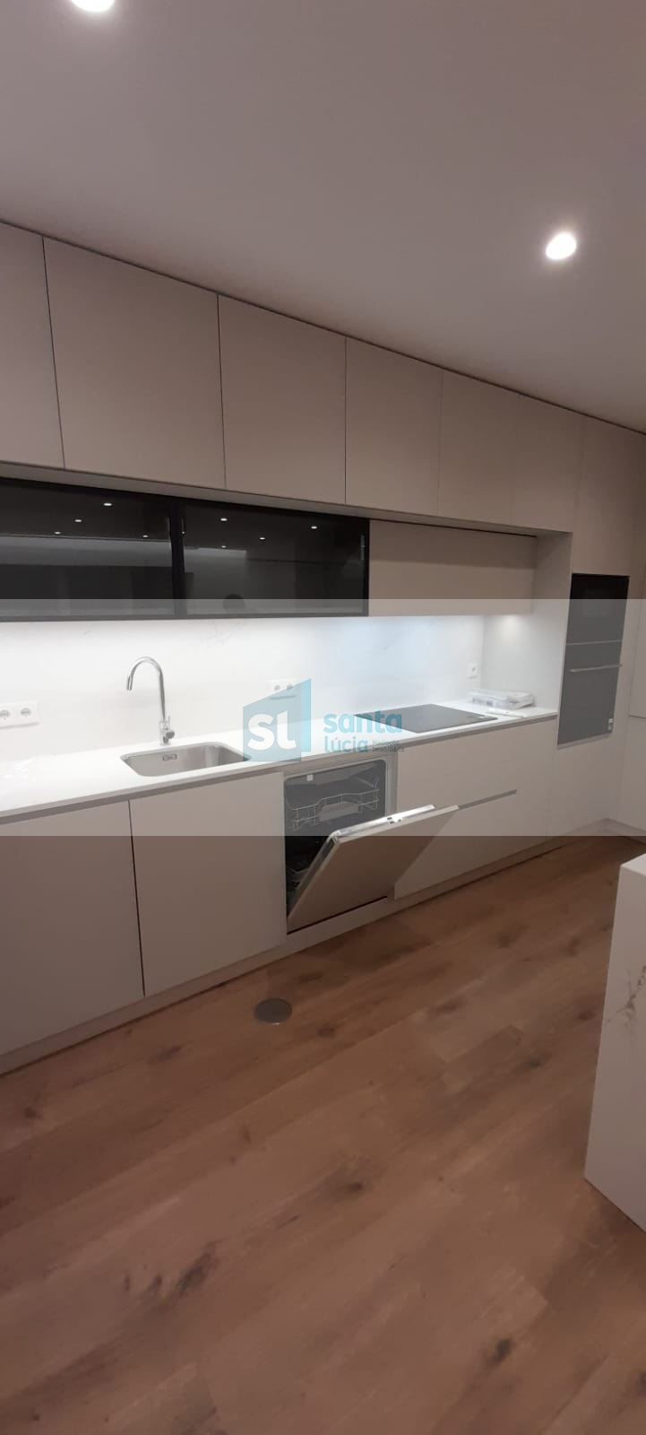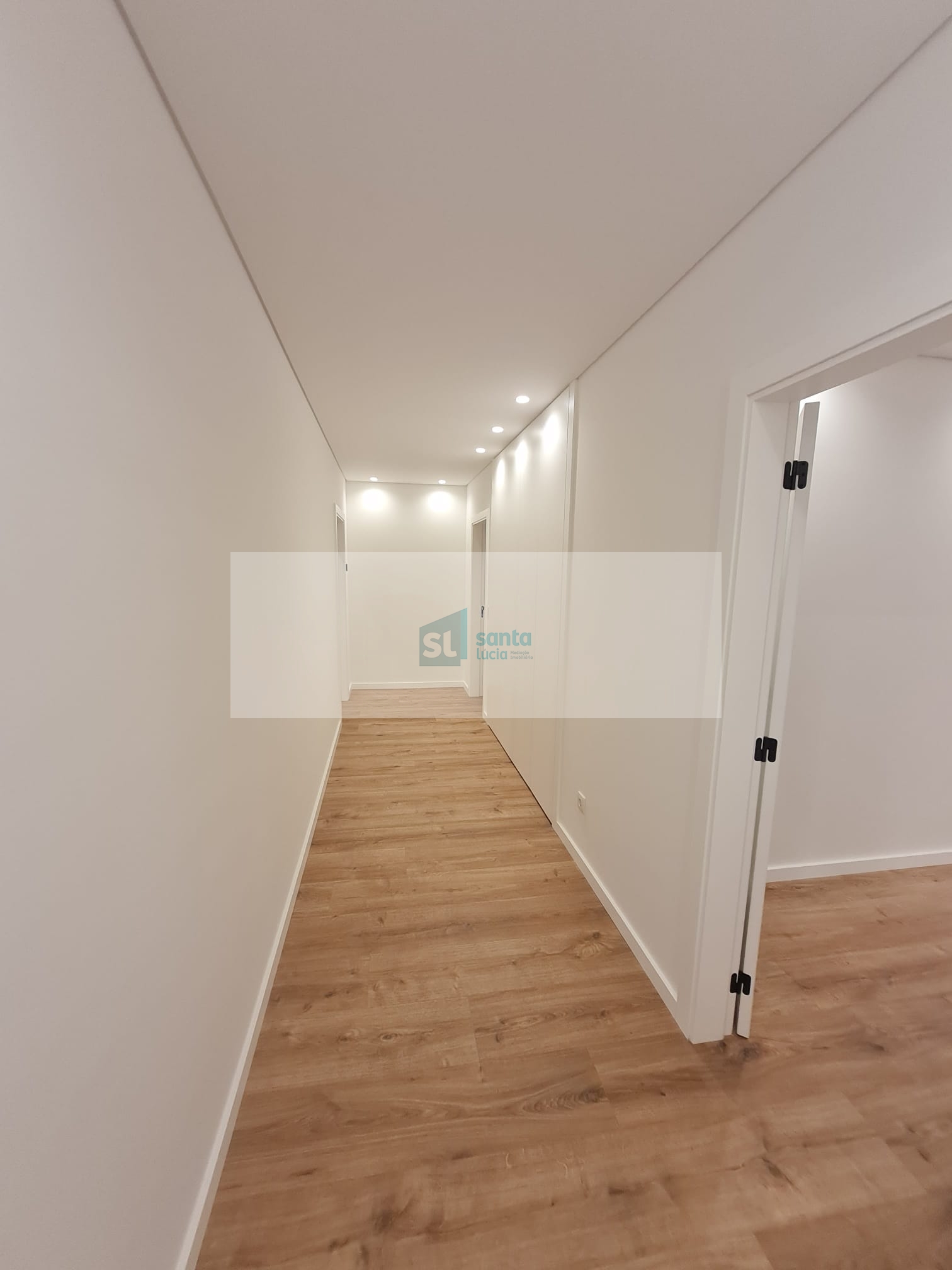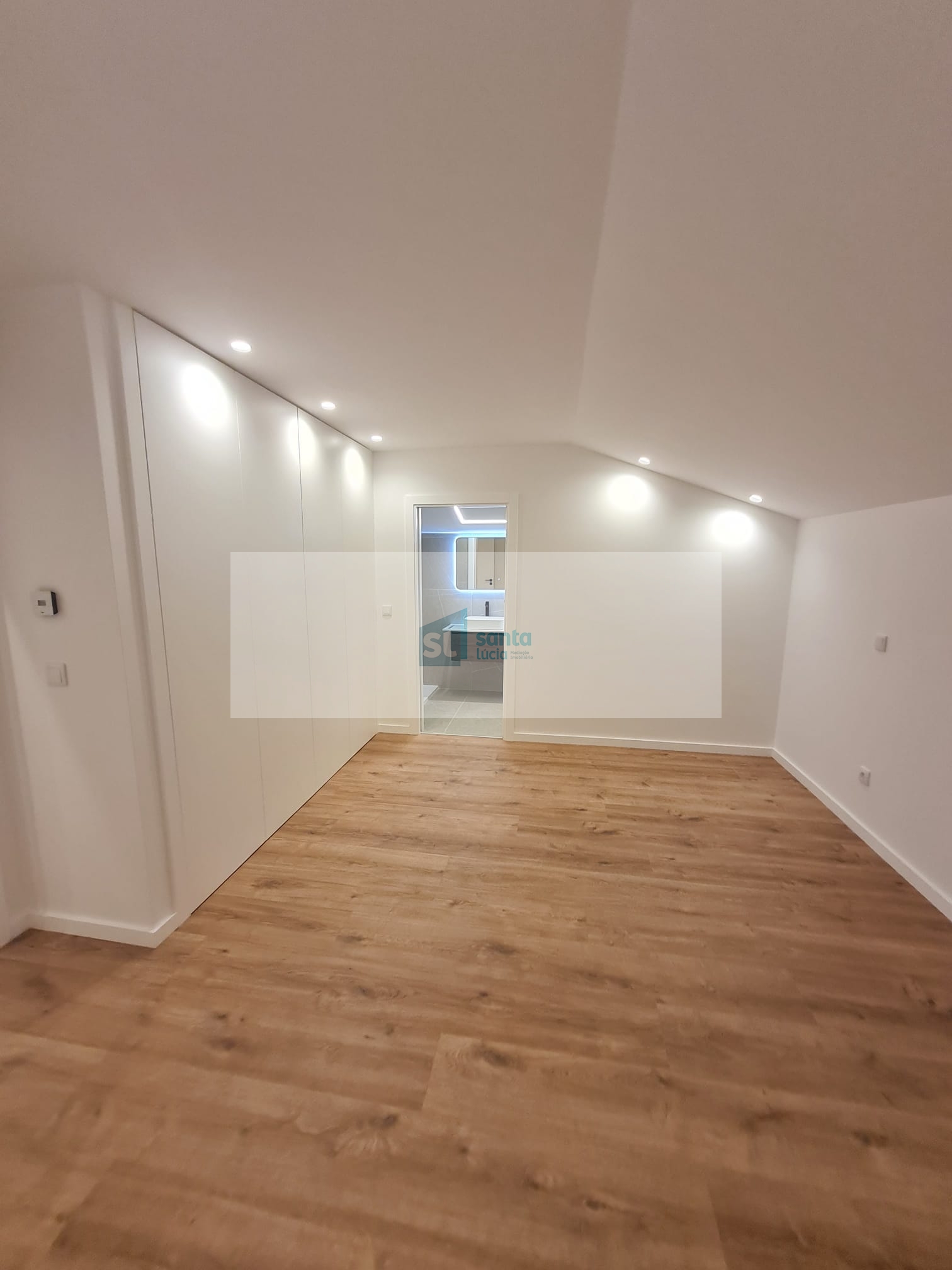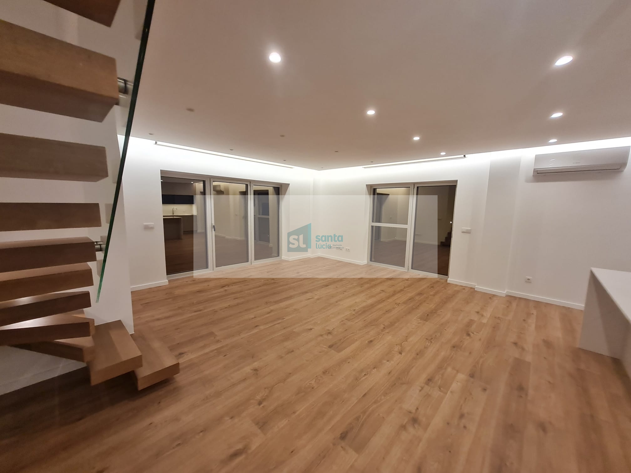 O apartamento tem piso radiante, ar condicionado, painéis fotovoltaicos e ainda uma garagem com áreas muito generosas e com portão automatizado.