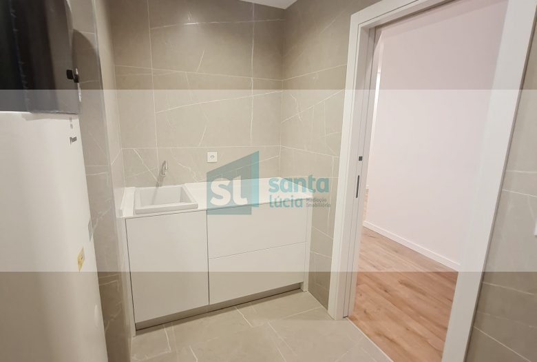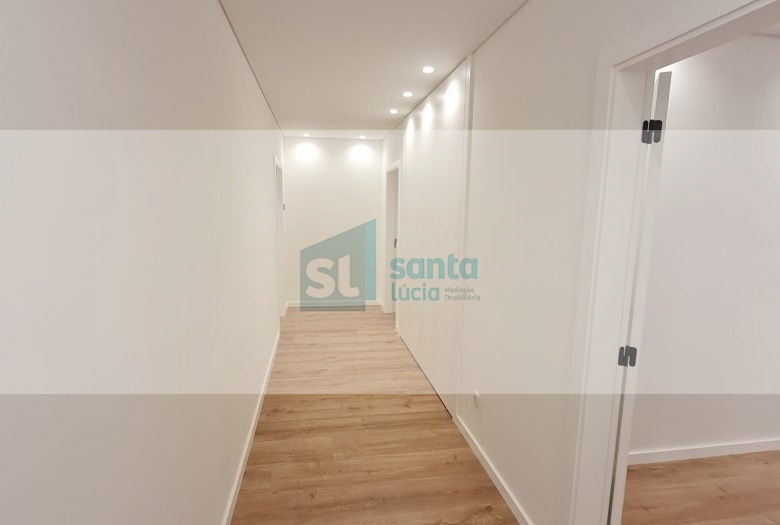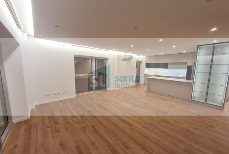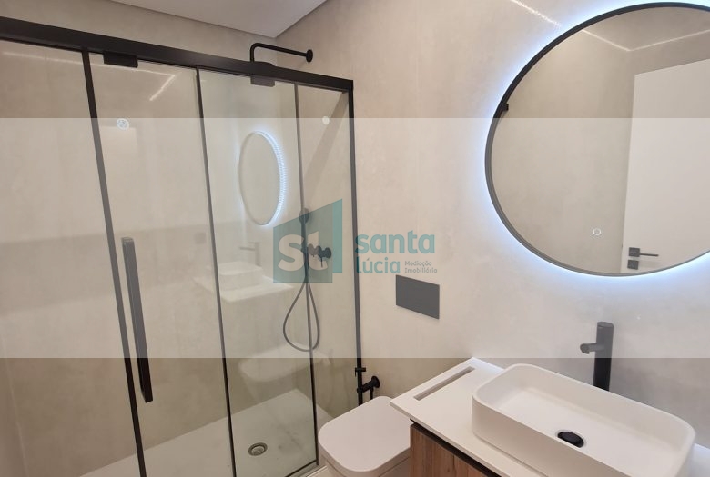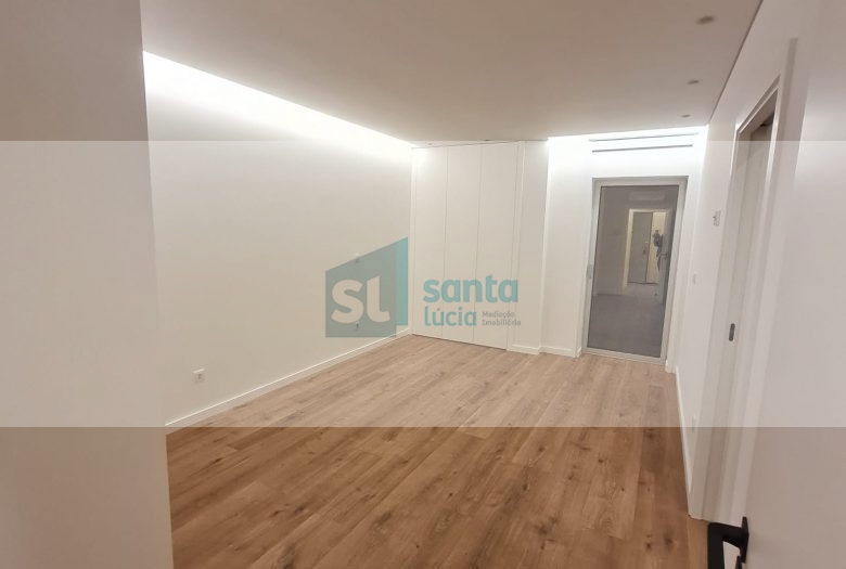 O apartamento tem piso radiante, ar condicionado, painéis fotovoltaicos e ainda uma garagem com áreas muito generosas e com portão automatizado.