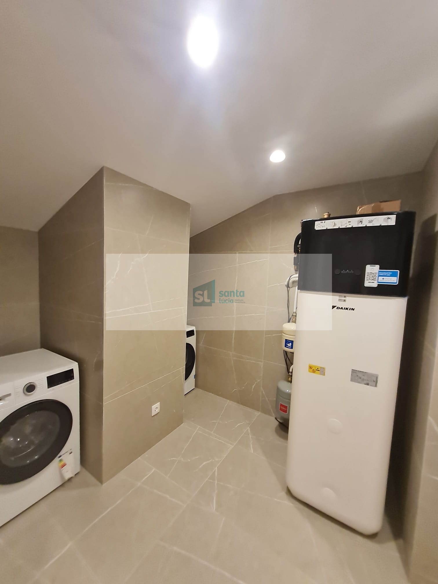 No piso superior temos uma lavandaria equipada com tanque, máquina de lavar roupa e máquina de secar roupa da marca Bosh e bomba de calor da marca Daikin, dois quartos um deles com roupeiro e closet e uma casa de banho completa, um roupeiro no hall e uma casa de banho completa. Excelente terraço com vista panorâmica para a serra.
